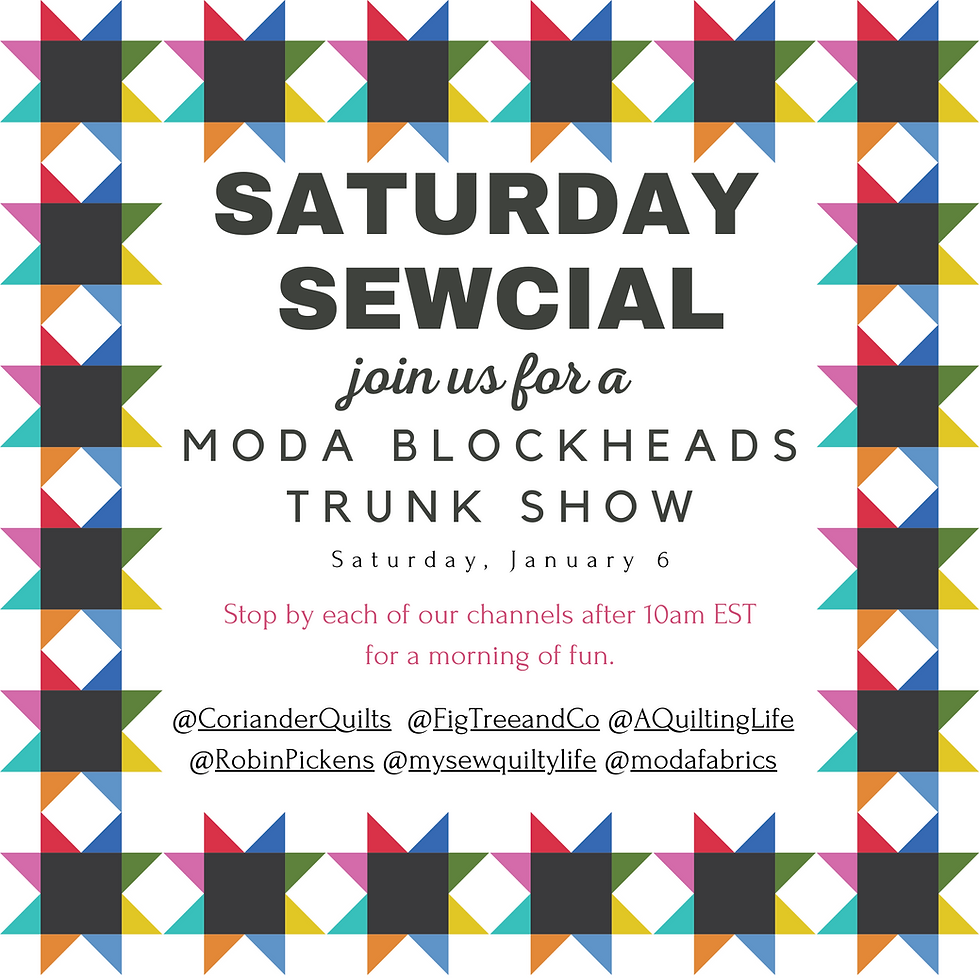 Join me and my Moda sisters on January 6, 2024 at 10am EST for a fun morning talking all about Moda Blockheads 5. I’ll be sharing my first block, designed by Sherri McConnell of A Quilting Life, as well as three fun free settings to use your Blockheads blocks. Be sure to subscribe to my YouTube channel so you don't miss this event.